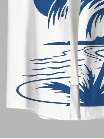 Chemise Hawaiienne Imprimé Cocotier Contrastant avec Poches Grande Taille pour Homme - Blanc - Blanc