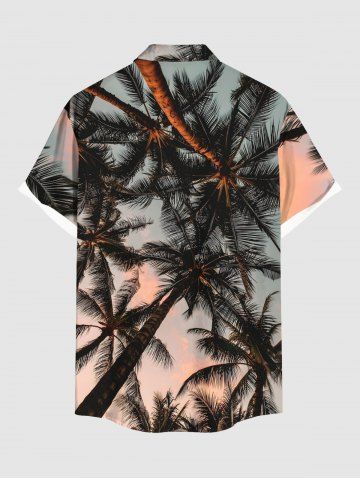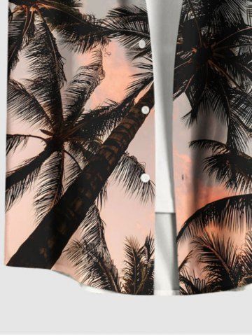 Chemise Hawaiienne Imprimé Cocotier et Ciel Grande Taille avec Poches - Noir - Noir