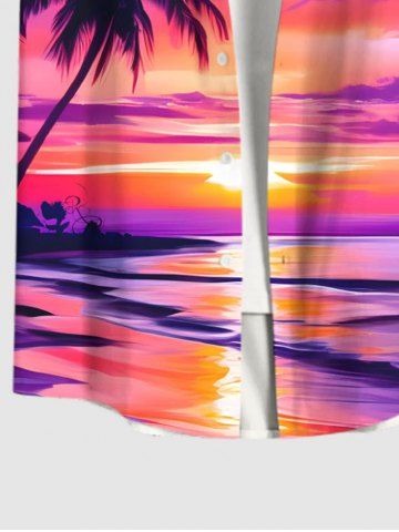Chemise Hawaiienne Imprimé Cocotier et Coucher de Soleil avec Poche Grande Taille pour Homme - Multi-a - S