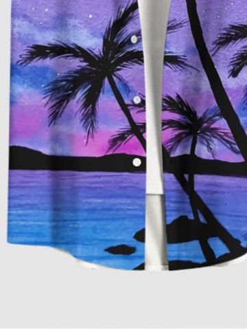 Chemise Hawaiienne Imprimé Cocotier et Galaxie Grande Taille avec Poches - Pourpre - Pourpre