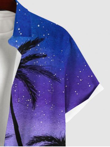 Chemise à Manches Courts> Chemise Hawaiienne Imprimé Cocotier et Galaxie Grande Taille avec Poches