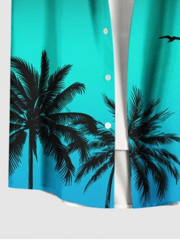 Chemise Hawaiienne Imprimé Cocotier et Oiseaux à Boutons Grande Taille avec Poche - Vert - Vert