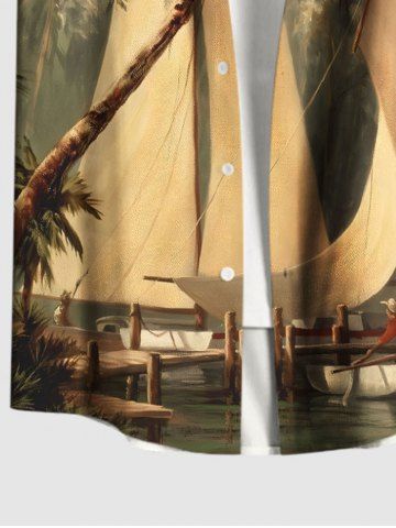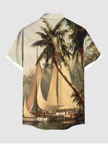 Chemise Hawaiienne Imprimé Cocotier et Palmier avec Poche Grande Taille pour Homme - Café Lumière - S