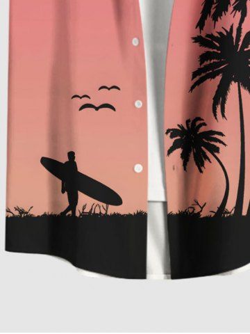 Chemise à Manches Courts> Chemise Hawaiienne Imprimé Cocotier et Surfeur Grande Taille avec Poche