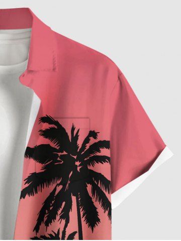 Chemise Hawaiienne Imprimé Cocotier et Surfeur Grande Taille avec Poche - Rouge - Rouge