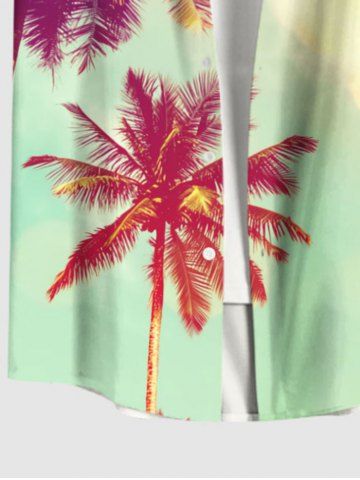 Chemise Hawaiienne Imprimé Cocotier Ombre à Pois Grande Taille avec Poches - Vert - Vert