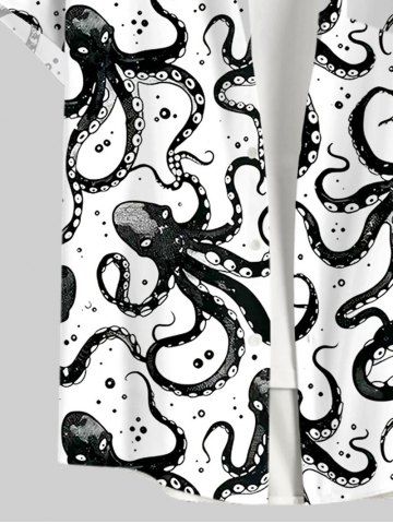 Chemise Hawaiienne Imprimé Poulpe à Deux Tons Grande Taille avec Poches - Blanc - Blanc