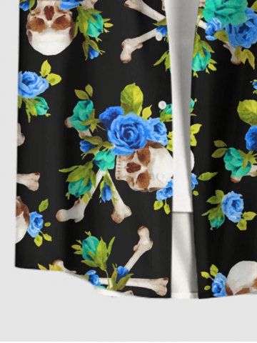 Chemise Homme à Boutons avec Poche Imprimé Roses et Crânes - Noir - Noir