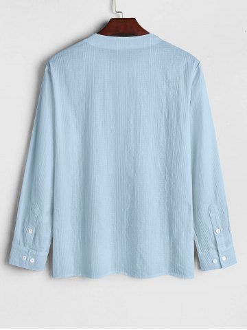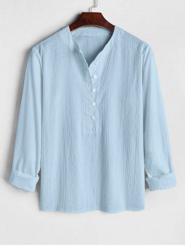 Chemise Homme en Couleur Unie à Demi-Bouton à Manches Longues - Bleu Clair - Bleu Clair
