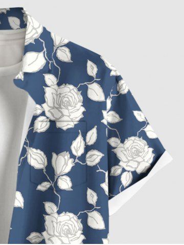 Chemise Imprimé à Feuilles et Fleurs Grande Taille à Boutons avec Poche pour Homme - Bleu - Bleu