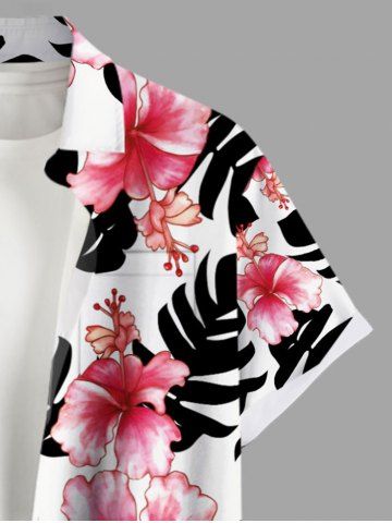 Chemise Imprimé à Feuilles et Fleurs Tropicales Grande Taille avec Poche pour Homme - Blanc - Blanc