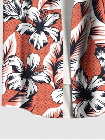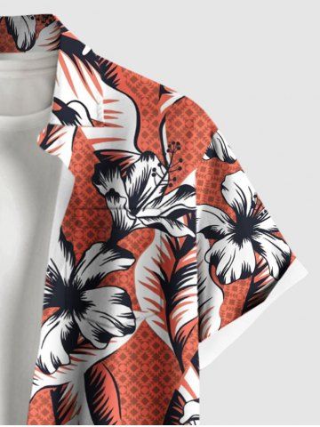 Chemise Imprimé à Feuilles et Fleurs Tropicales Grande Taille avec Poche pour Homme - Rouge - Rouge