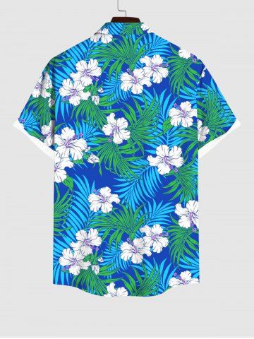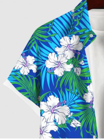 Chemise Imprimé à Fleurs et Cocotier à Bouton Grande Taille avec Poche pour Homme - Bleu - Bleu