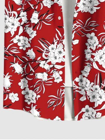 Chemise Imprimé à Fleurs et Feuilles à Boutons Grande Taille avec Poche pour Homme - Rouge - Rouge