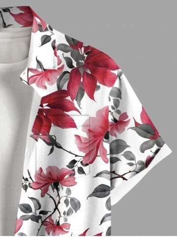 Chemise Imprimé à Fleurs et Feuilles Style Chinois à Boutons avec Poche Grande Taille pour Homme - Rouge - Rouge
