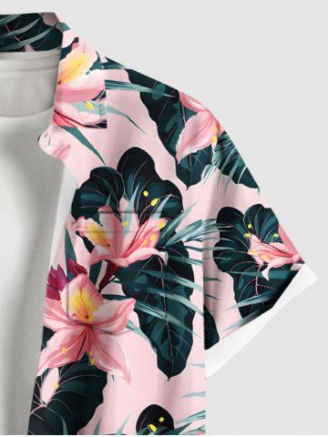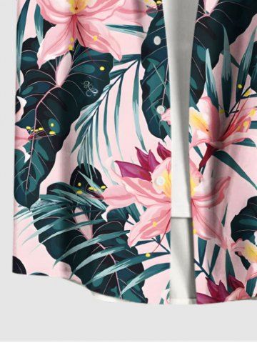 Chemise Imprimé à Fleurs et Feuilles Tropicales à Boutons Grande Taille avec Poche pour Homme - Rose Clair - Rose Léger