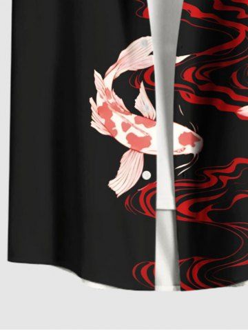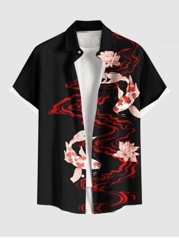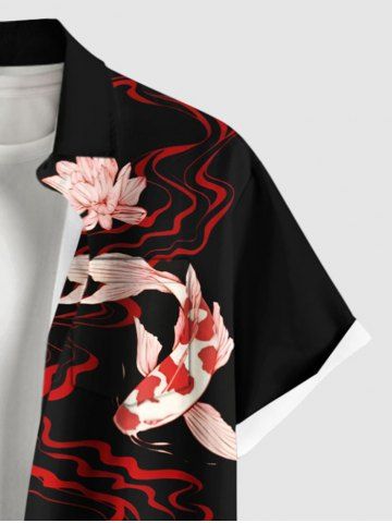 Chemise Imprimé à Fleurs et Poissons à Boutons avec Poche Grande Taille pour Homme - Noir - Noir