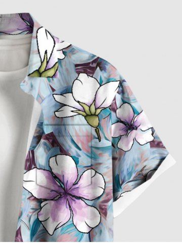 Chemise Imprimé à Fleurs Grande Taille avec Poche Frontale pour Homme - Bleu Clair - Bleu Clair