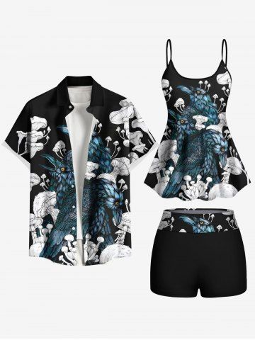 Chemise Imprimé Aigle Champignon à Poches Grande Taille pour Homme - Noir - Noir