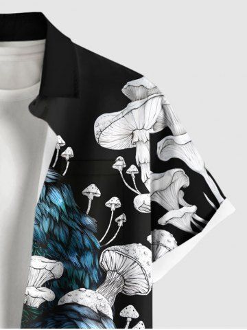 Chemise Imprimé Aigle Champignon à Poches Grande Taille pour Homme - Noir - Noir