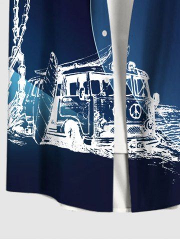 Chemise Imprimé Bus à Boutons avec Poche Grande Taille pour Homme - Bleu De Minuit - Xl