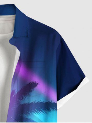 Chemise Imprimé Cocotier 3D avec Poche Grande Taille - Bleu - Bleu