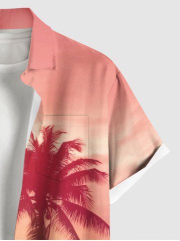 Chemise Imprimé Cocotier 3D avec Poches Grande Taille pour Homme - Rouge - Rouge
