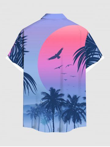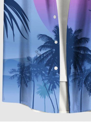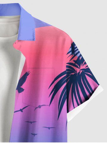Chemise Imprimé Cocotier 3D avec Poches Grande Taille pour Homme - Violet Clair - Violet Clair