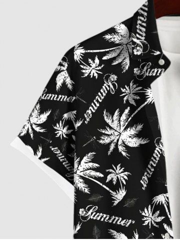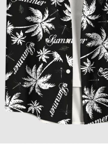 Chemise Imprimé Cocotier à Boutons Grande Taille avec Poche pour Homme - Noir - Noir