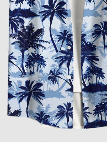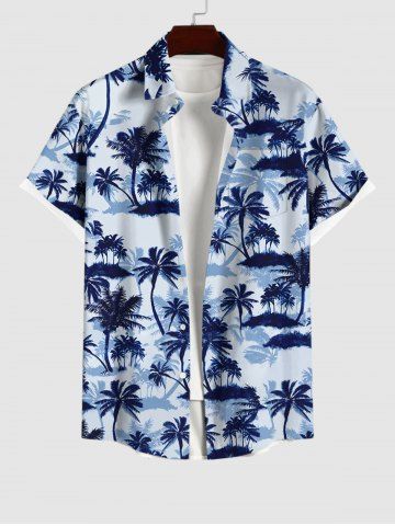 Chemise Imprimé Cocotier à Boutons Grande Taille avec Poche pour Homme - Bleu - Bleu