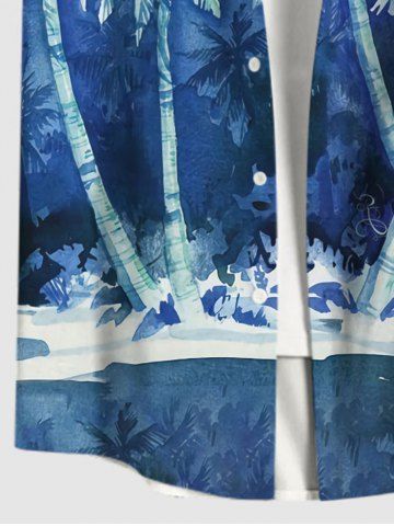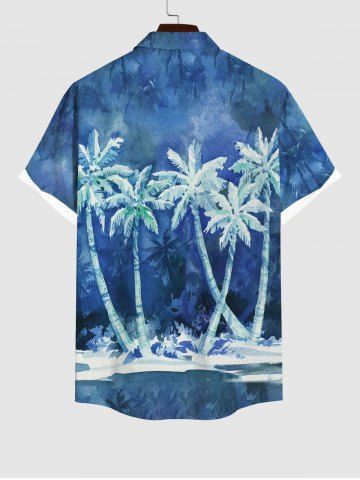 Chemise Imprimé Cocotier à Boutons Grande Taille avec Poche pour Homme - Bleu Profond - M