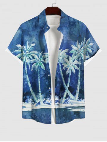 Chemise Imprimé Cocotier à Boutons Grande Taille avec Poche pour Homme - Bleu Profond - 2xl