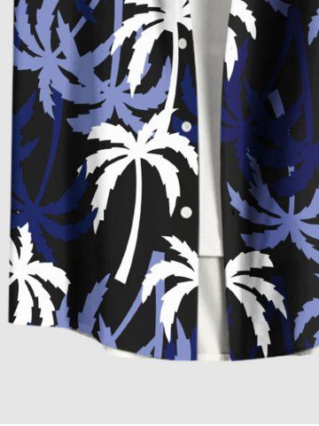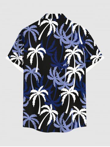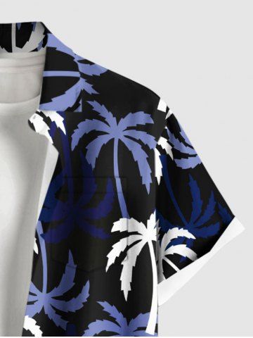 Chemise Imprimé Cocotier à Boutons Grande Taille avec Poche pour Homme - Noir - Noir