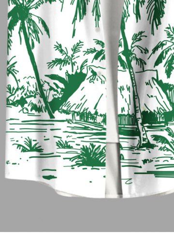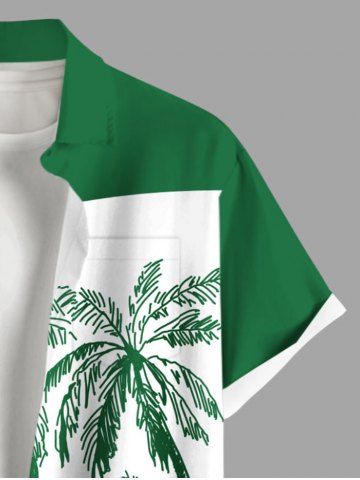 Chemise Imprimé Cocotier à Boutons Grande Taille avec Poche pour Homme - Vert - Vert