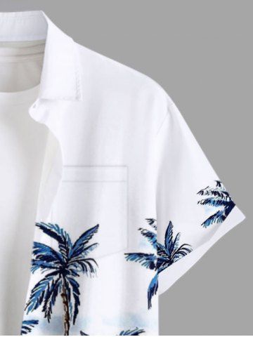 Chemise Imprimé Cocotier à Boutons Grande Taille avec Poche pour Homme - Blanc - Blanc