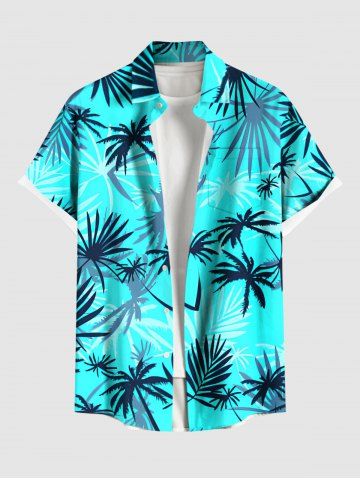 Chemise Imprimé Cocotier à Boutons Grande Taille avec Poche pour Homme - Vert Clair - Vert Clair
