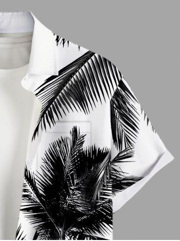 Chemise Imprimé Cocotier à Boutons Grande Taille avec Poche pour Homme - Blanc - Blanc