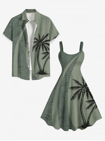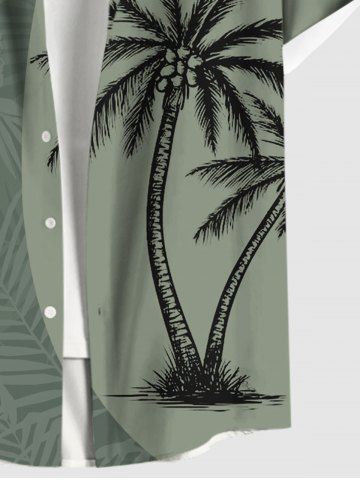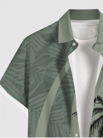Chemise Imprimé Cocotier à Feuilles Tropicales à Boutons Grande Taille avec Poche pour Homme - Vert Clair - Vert Clair