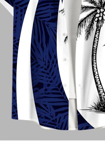 Chemise Imprimé Cocotier à Feuilles Tropicales à Boutons Grande Taille avec Poche pour Homme - Bleu Profond - 5xl