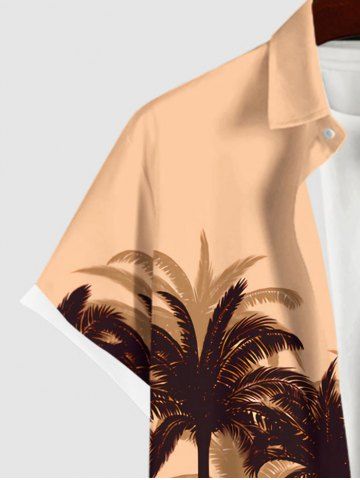 Chemise Imprimé Cocotier à Poches Grande Taille pour Homme - Orange Clair - L