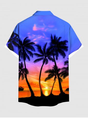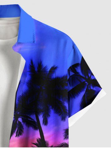 Chemise Imprimé Cocotier Colorée avec Poches Grande Taille pour Homme - Bleu Ciel - Bleu Ciel