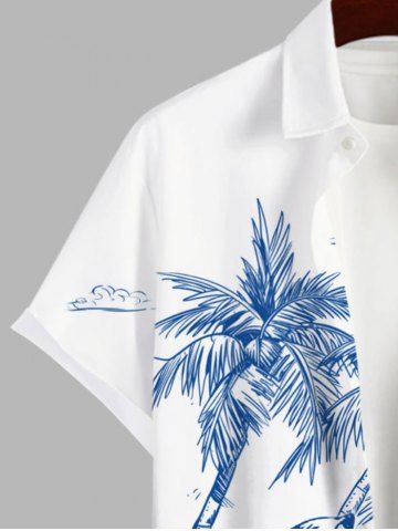 Chemise Imprimé Cocotier Crâne Grande Taille avec Poche à Boutons pour Homme - Blanc - Blanc