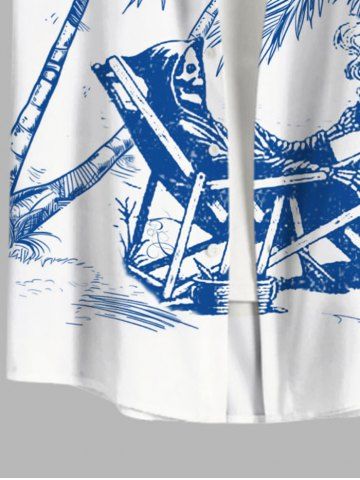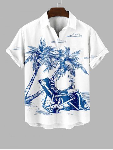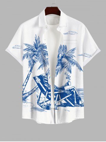 Chemise Imprimé Cocotier Crâne Grande Taille avec Poche à Boutons pour Homme - Blanc - Blanc
