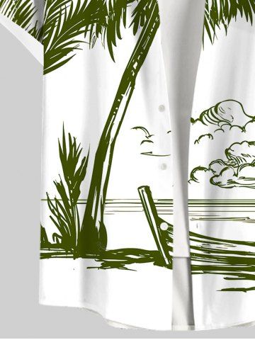 Chemise à Manches Courts > Chemise Imprimé Cocotier Derrière la Montagne Grande Taille avec Poches