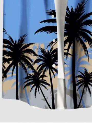 Chemise Imprimé Cocotier et Ciel Grande Taille avec Poches à Boutons pour Homme - Bleu Ciel - Bleu Ciel