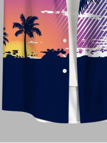 Chemise Imprimé Cocotier et Coucher du Soleil avec Poches Grande Taille pour Homme - Multi-a - 3xl