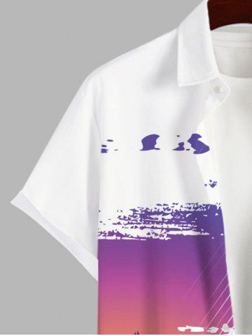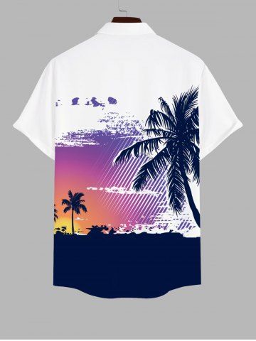 Chemise Imprimé Cocotier et Coucher du Soleil avec Poches Grande Taille pour Homme - Multi-a - 4xl