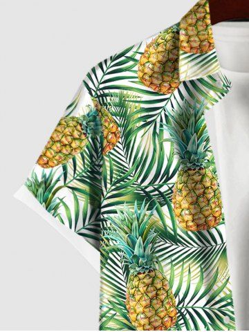 Chemise à Manches Courts> Chemise Imprimé Cocotier et Feuille Tropicale à Boutons Grande Taille avec Poche pour Homme