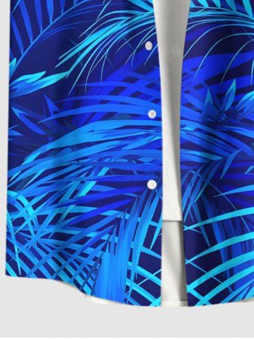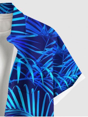 Chemise Imprimé Cocotier et Feuille Tropicale à Boutons Grande Taille avec Poche pour Homme - Bleu - Bleu
