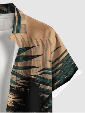 Chemise à Manches Courts> Chemise Imprimé Cocotier et Feuille Tropicale à Boutons Grande Taille avec Poche pour Homme